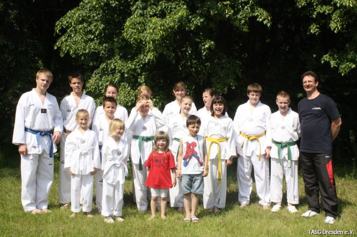 Beim Jubiläumsfest der Parkeisenbahn Dresden hatte die TASG Dresden die Gelegenheit sich mit einer kleinen Vorführung vorzustellen. Bei herrlichstem Sonnenschein zeigten unsere Kinder ihr Können im Taekwondo und Allkampf sowie in der Selbstverteidigung. Als Belohnung gab es dann noch eine Fahrt mit der Parkeisenbahn.