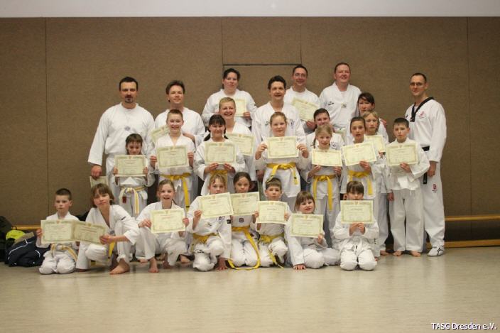 Im März fanden unsere ersten Prüfungen in diesem Jahr statt. Darunter waren auch 25 Sportler die ihre jeweiligen Prüfungen bis zum 9., 8., 7. und 6. Kup absolvierten. Trotz großer Aufregung konnten sich am Ende alle Teinehmer über ihre neue Graduierung freuen. Prüfungsbeste war einmal mehr Josephine Weber. Sie zeigte schon im vergangenen Jahr hervorragende Leistungen und konnte dies auch jetzt eindrucksvoll wiederholen.