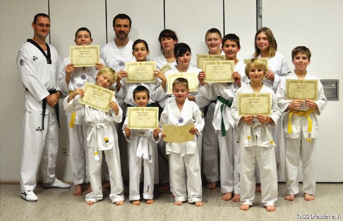 Insgesamt 13 Sportler zwischen 5 und 43 Jahren traten an. Am Ende der Prüfung wurde ihnen vom Prüfer des Bundesverbandes eine tolle Leistung bescheinigt. Der Lohn für die Anstrengungen: - alle Sportler können sich über ihre neue Graduierung freuen.