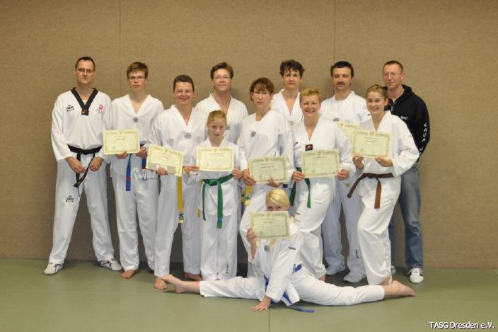 Die Taekwondoprüfung ist auch geschafft - und auch diese war für alle Teilnehmer ein riesiger Erfolg. Alle konnten sich am Ende über die neue Graduierung freuen.